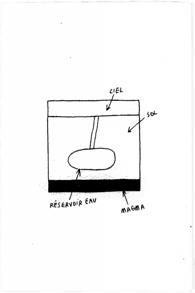 Explication et schématisation du cycle éruptif d’un geyser mini édition 14 pliante impression risographique